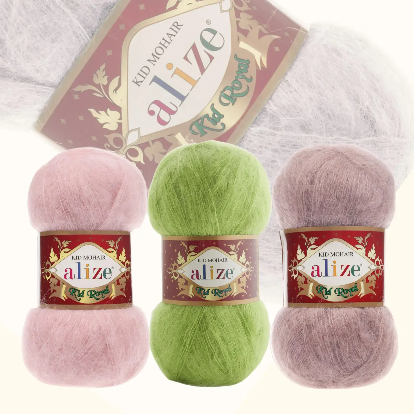 خيط ألايز كيد رويال 50 ناعم ورقيق بشكل رائع، مصنوع من 62% كيد موهير فاخر و38% بولياميد، ليجمع بين فخامة الموهير الطبيعية وقوة الألياف الحديثة. يمنحك قماشًا خفيفًا ومتوهجًا بملمس رقيق، مثالي للمشاريع الأنيقة والكلاسيكية ذات الطابع الراقي