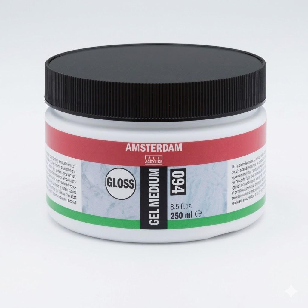 جل وسيط لامع من أمستردام 250 مل يعزز سماكة ولمعان وشفافية ألوان الأكريليك. يجف شفافًا بمرونة ولمعة عالية.