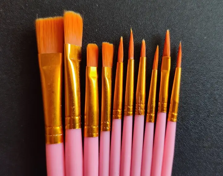 طقم 9 فرشاة فنية عالية الجودة بشعيرات نايلون، مثالي للرسم بالألوان الزيتية والمائية. مناسب للمبتدئين والطلاب والفنانين المحترفين.