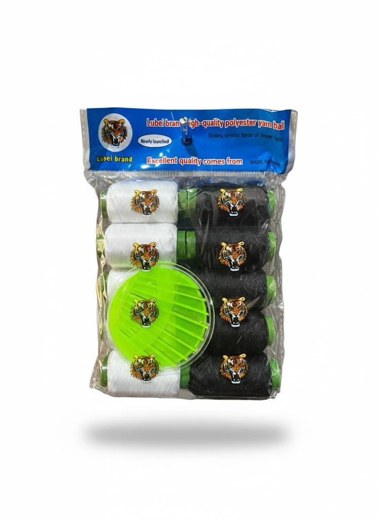 المحتويات: 10 لفات خيط، 5 أسود و5 أبيض. مجموعة إبر خياطة. الاستخدام: إصلاح الملابس، خياطة منزلية أساسية.