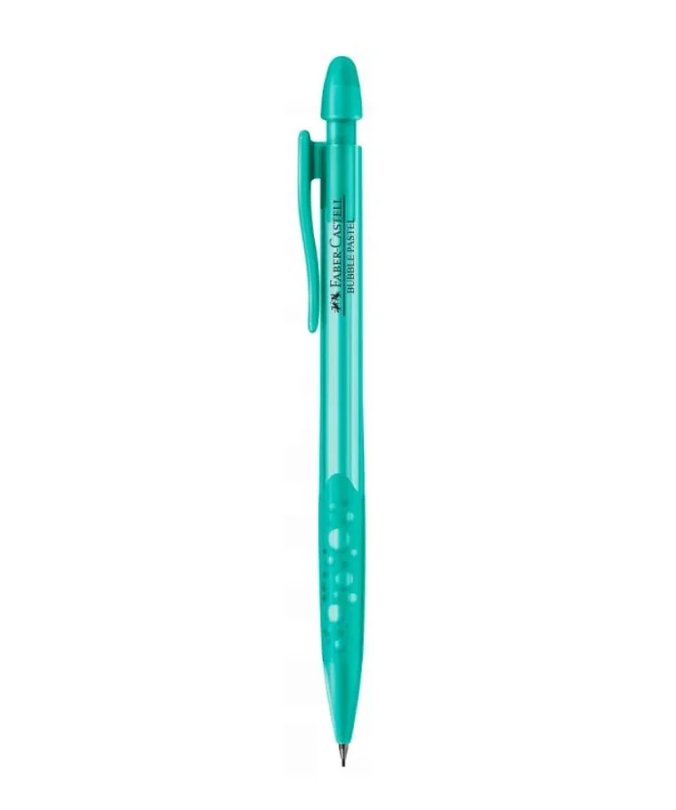 Faber-Castell Bubble Mechanical Pencil 0.5 mm features a fun design with a comfortable grip for everyday writing. It uses 0.5 mm leads and comes with an eraser under the cap. Available in pink, aqua blue, blue, and purple.