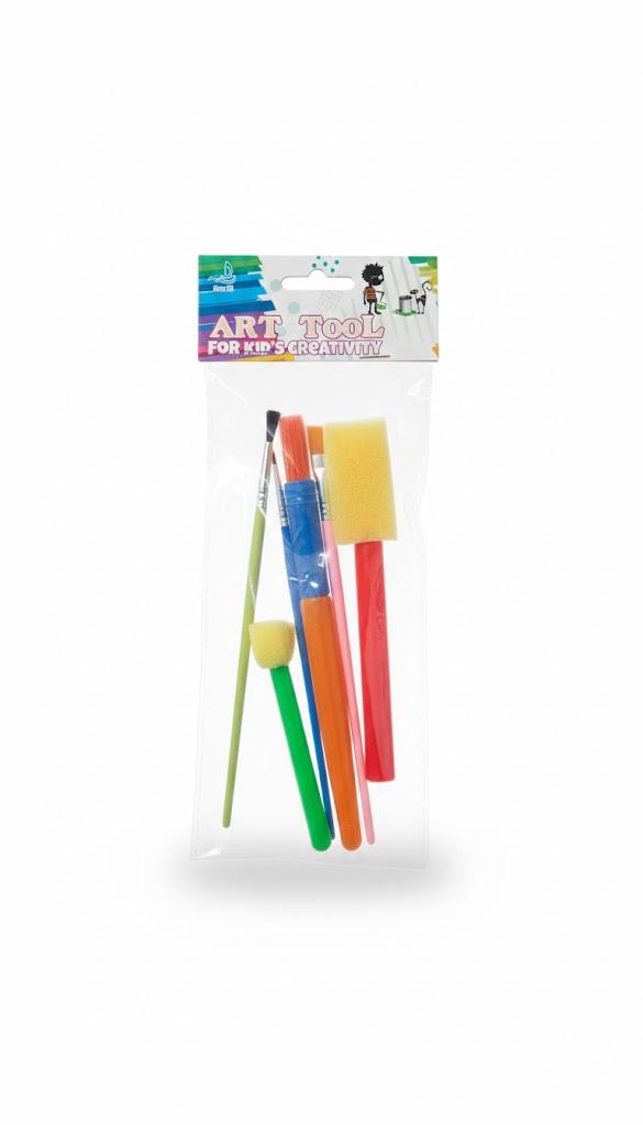 طقم فني ممتع وسهل الاستخدام للأطفال، يجمع بين فرش الرسم وأدوات الإسفنج لتنفيذ أنشطة فنية إبداعية في المنزل أو المدرسة.