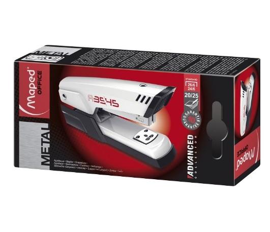 A premium quality metal stapler from Maped’s Advanced Collection. Designed for comfort and durability, it staples up to 25 sheets with standard 24/6 and 26/6 staples. Backed by a 10-year guarantee, it’s a reliable choice for office and school use.