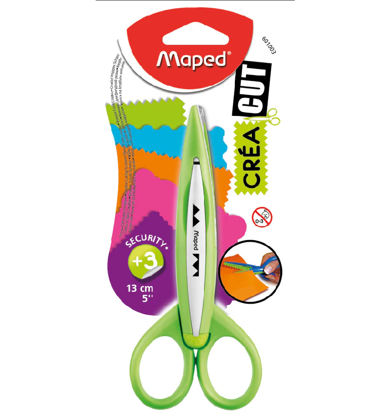 Maped CreaCut Security Scissors 13cm (5") – Safe scissors with special patterned blades for creative cutting. Suitable for children aged 3+, ideal for crafts and school activities.
