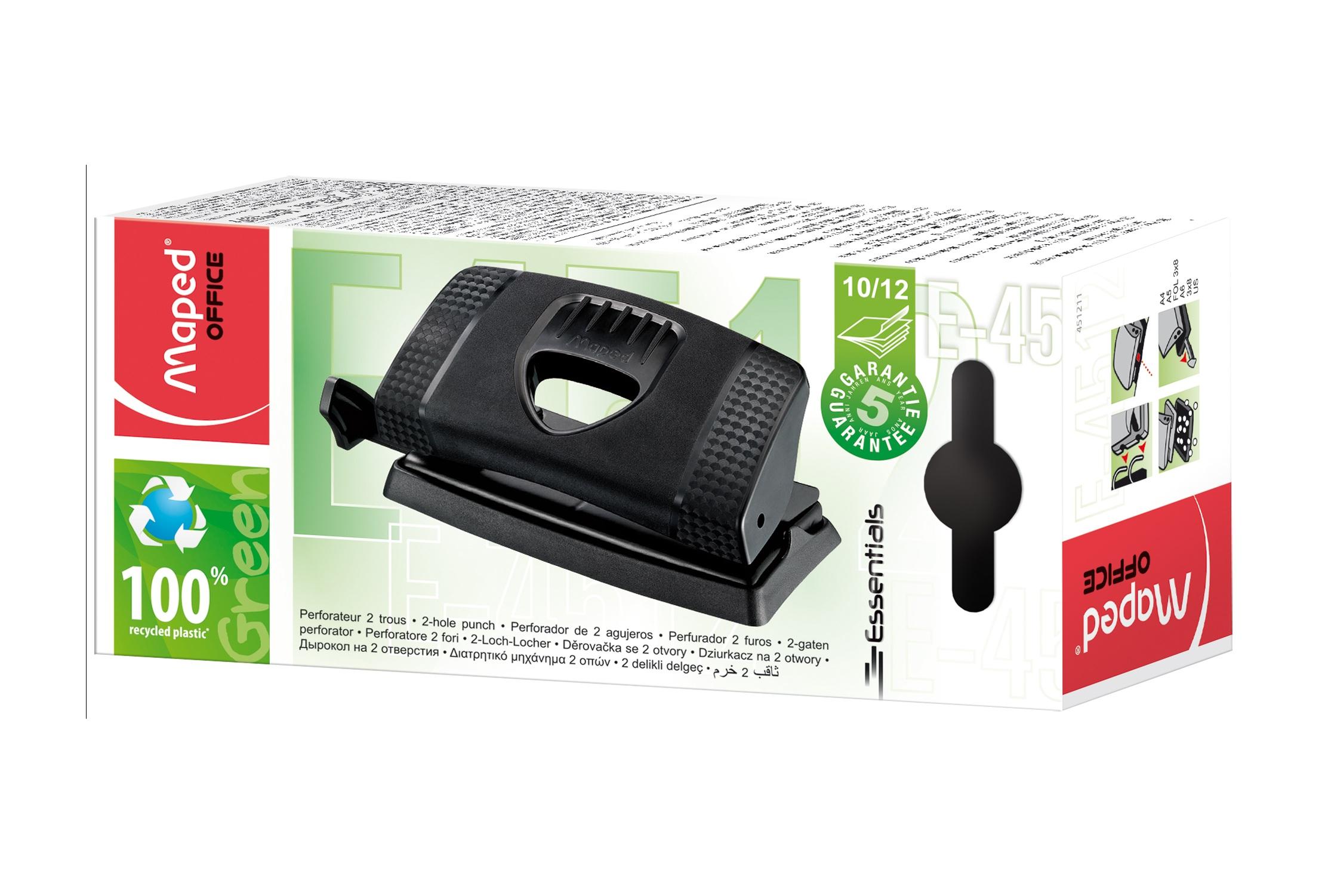Maped Office Essentials 2-Hole Punch 10/12 Sheets – Made from 100% recycled plastic. Durable, eco-friendly design with precise punching capacity, suitable for everyday office use. Comes with a 5-year guarantee.