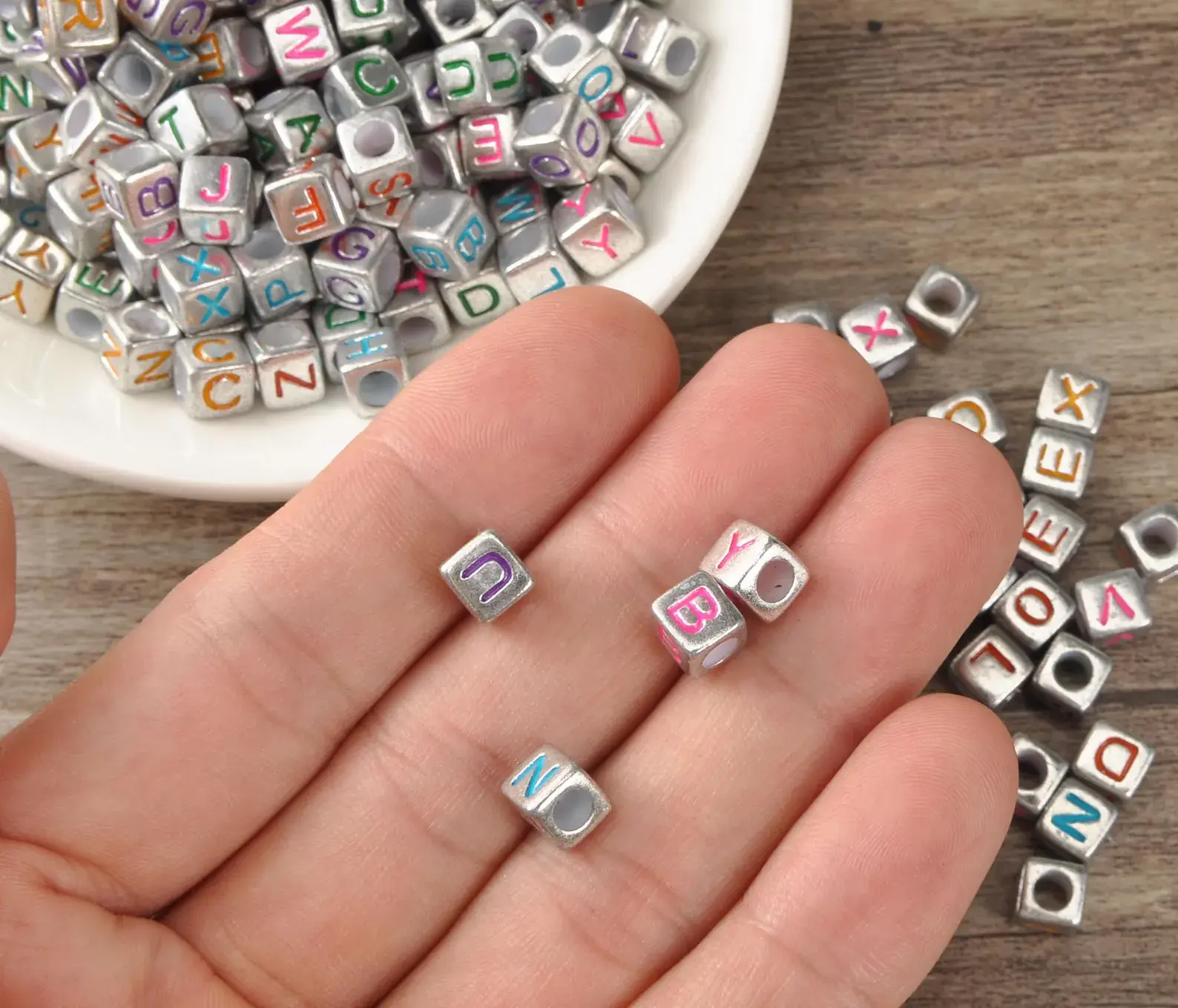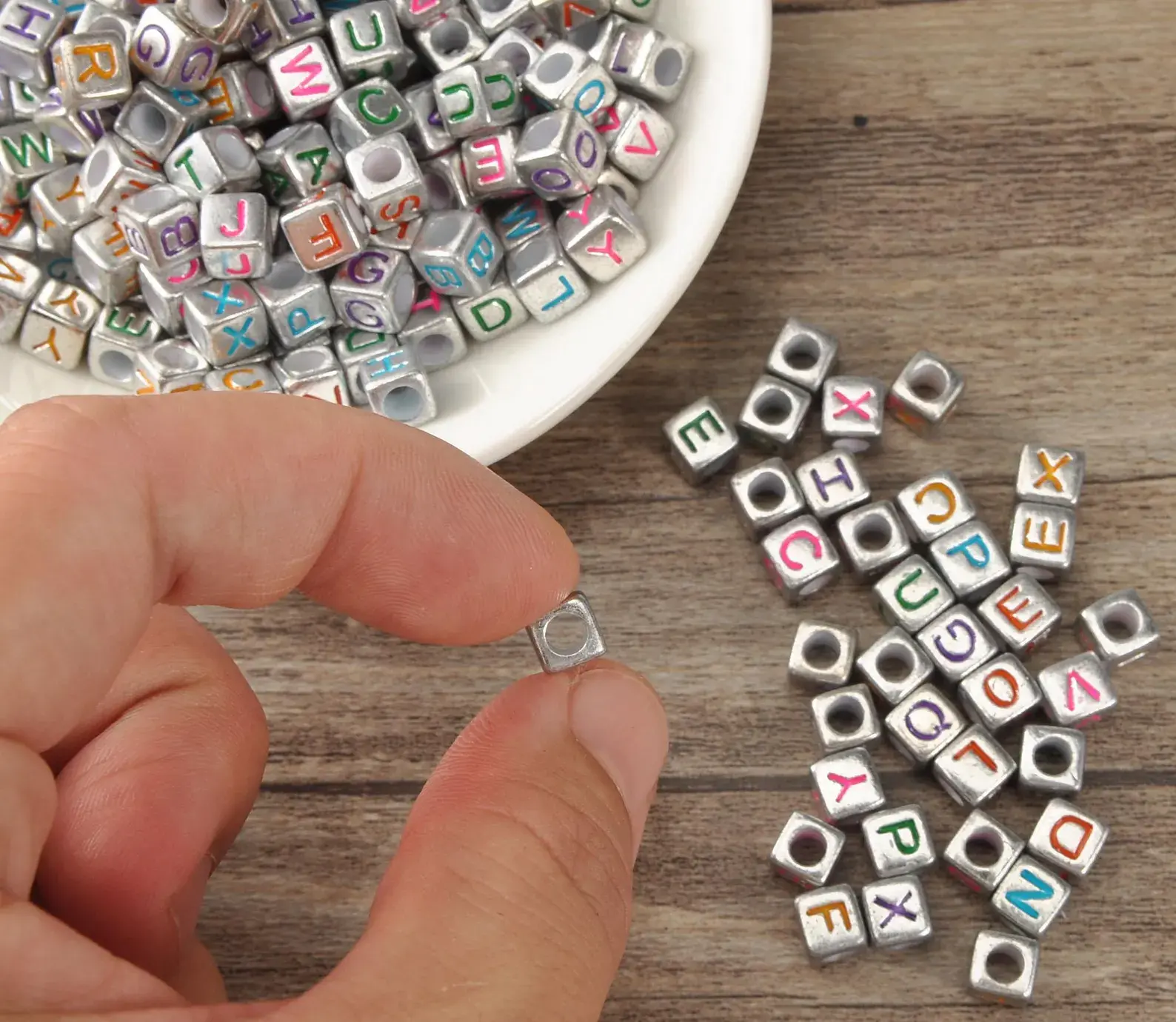 خرز بلاستيكي مربع مع ثقب 3 مم، مثالي لصنع الأساور والقلائد والمجوهرات اليدوية. آمن وخالي من النيكل والرصاص.