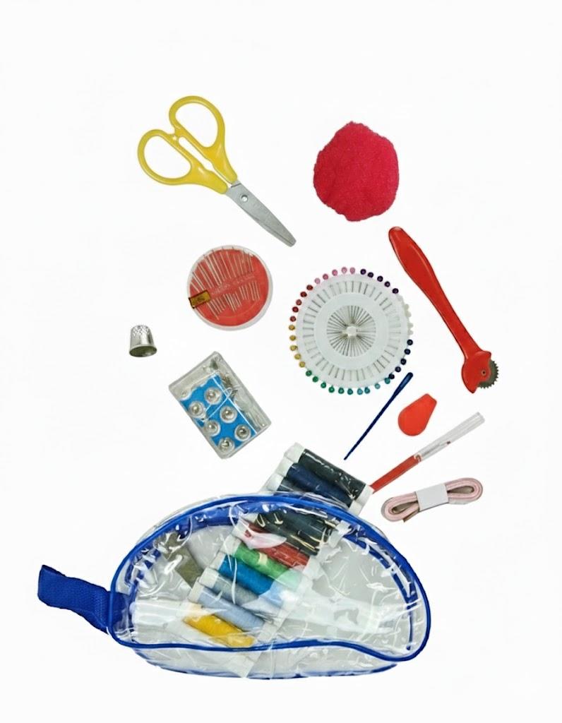 المحتويات: مقص واحد، 12 لون خيط، مجموعة إبر خياطة، شريط قياس، أداة إدخال الخيط في الإبرة. الاستخدام: خياطة منزلية، عدة سفر، إصلاحات سريعة.