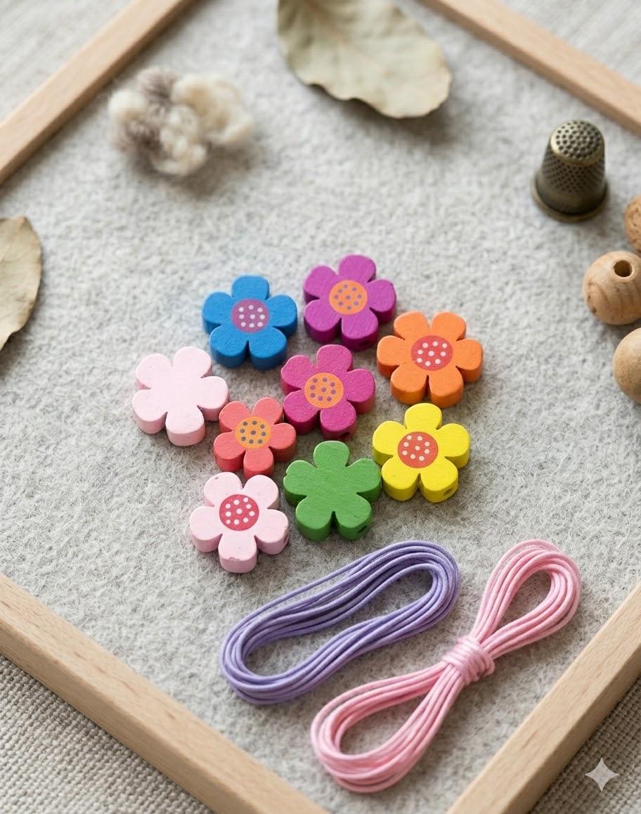 Every great bracelet starts with beads that make you smile. These Wooden Beads in Strawberry and Flower shapes bring colour, character, and charm to every jewellery project — whether you're crafting for yourself, making gifts, or creating with kids.