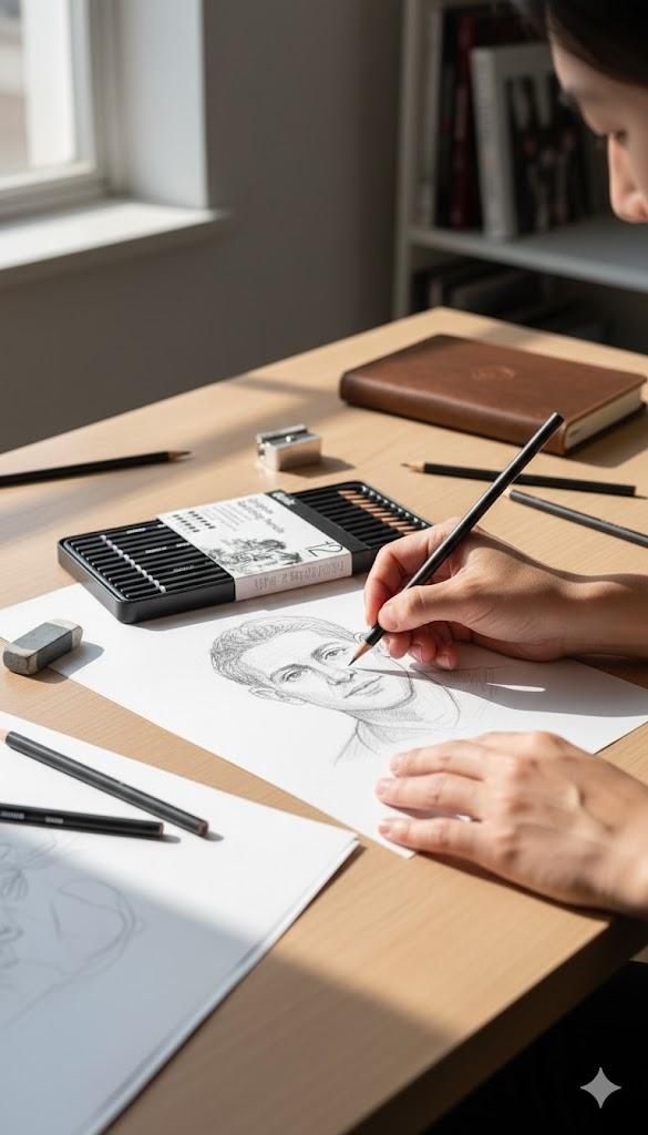 A professional set of graphite sketching pencils for artists and students. Perfect for drawing, sketching, shading, and detailed artwork with smooth, precise lines.