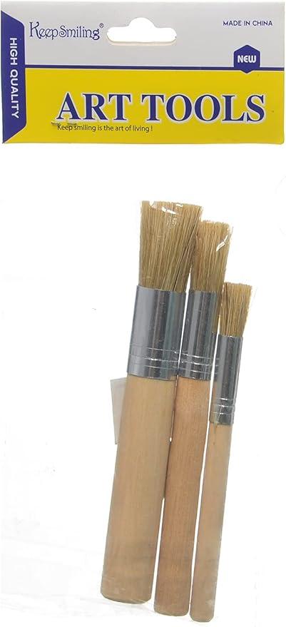 Paint brush set includes 3 brown brushes of different sizes. Ideal for acrylics, watercolors, and craft projects. Easy to use and durable.