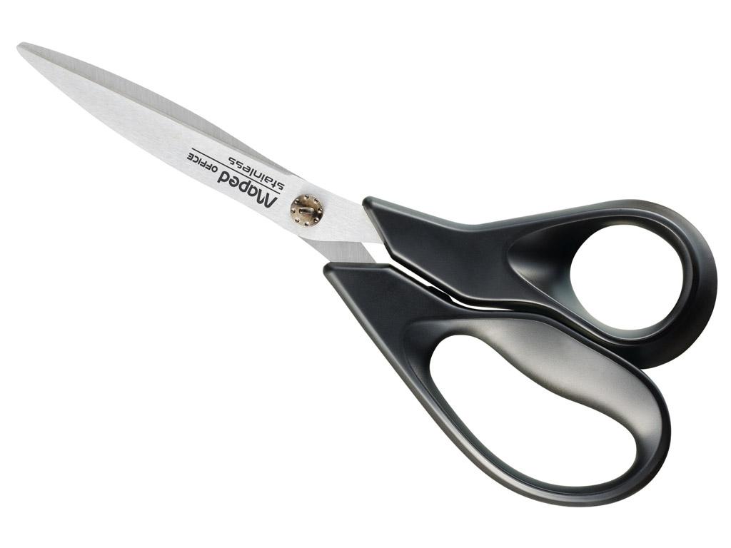 مقص متين مزوّد بشفرات طويلة من الفولاذ المقاوم للصدأ لقص سلس ودقيق للورق والكراتين وغيرها. يتميز بمقبض مريح مصنوع من 60٪ بلاستيك معاد تدويره، صديق للبيئة. يأتي مع ضمان لمدة 10 سنوات.